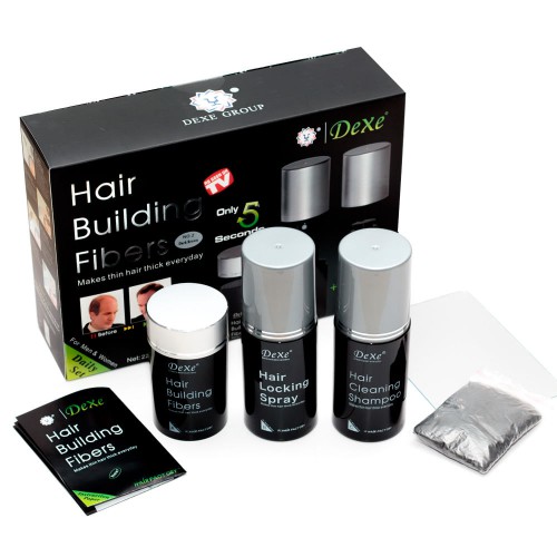 Kit Disfarce De Calvície + Spray Fixador + Shampoo Dexe Hair Fibers Castanho Médio