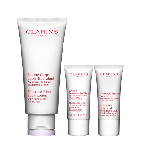 Clarins Perfect Hydratation Kit – Hidratante Corporal + Creme De Mãos + Esfoliante Corporal Kit